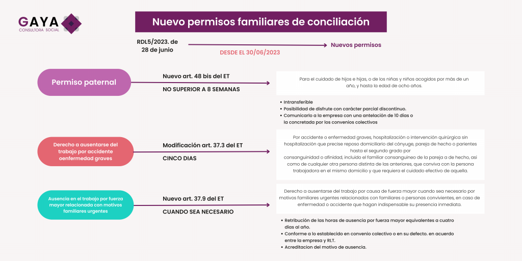 El Real Decreto-ley 5/2023, de 28 de junio aprueba los nuevos permisos para cuidar a hijos/as y familiares enfermos/as y para conciliar que son aplicables desde el 30 de junio. Las novedades más importantes son las siguientes: